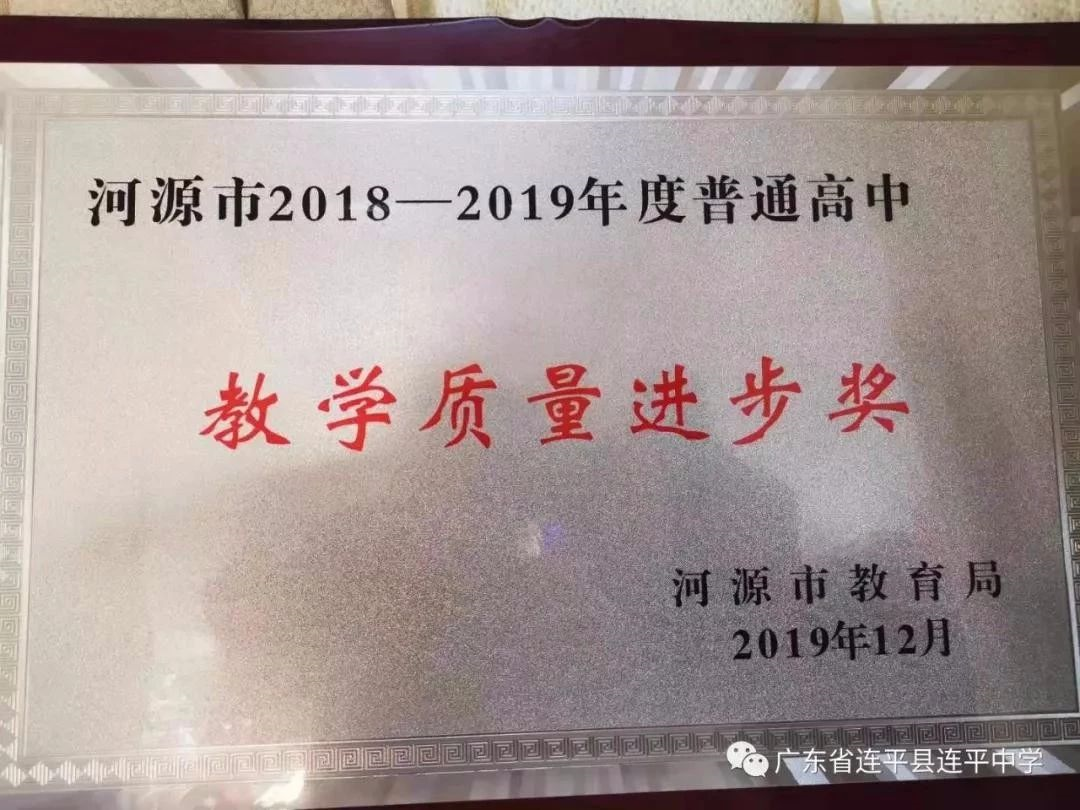 河源市2019年度高中教學(xué)質(zhì)量進步獎