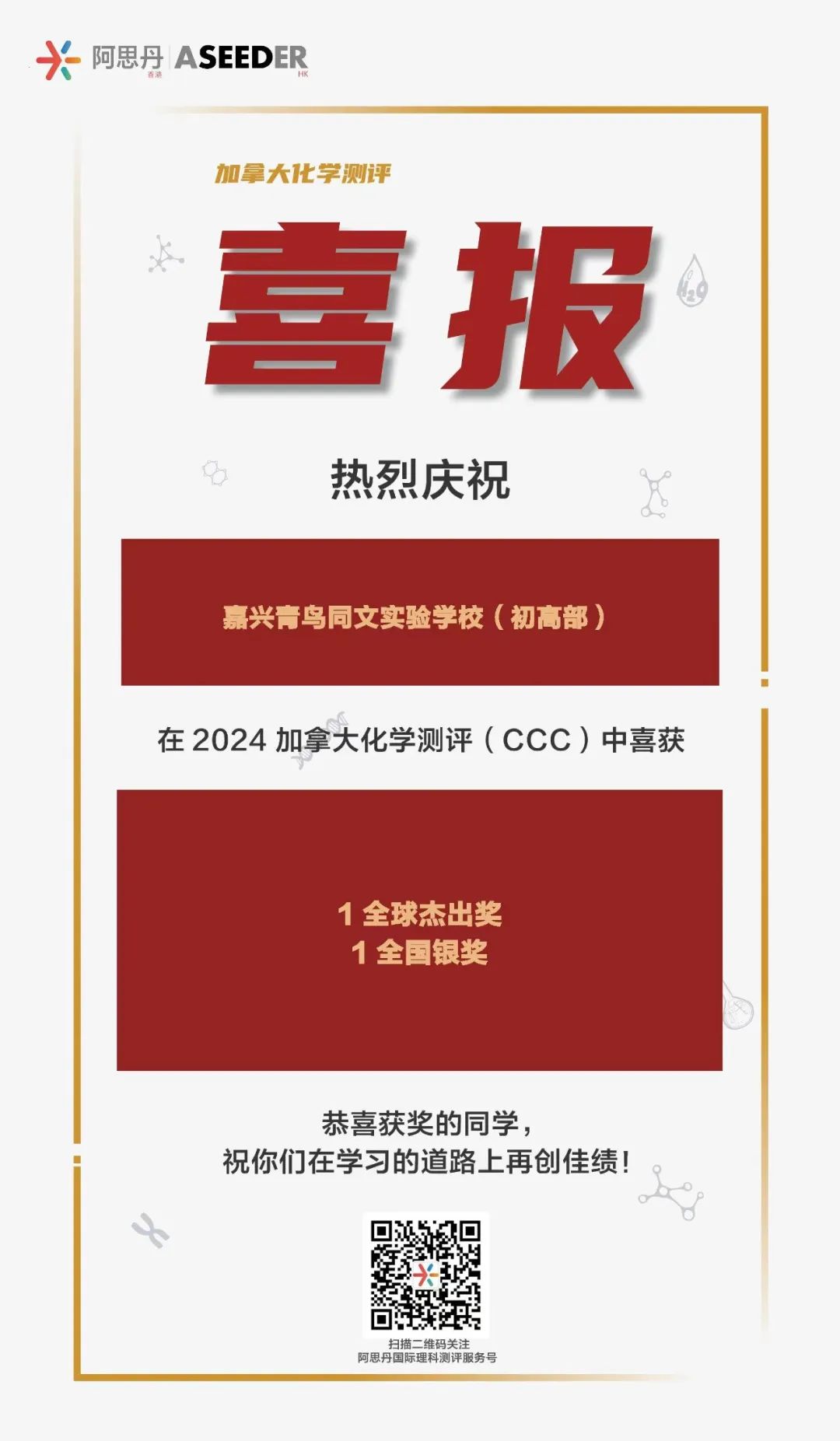 喜報|我校同學在2024加拿大化學測評(CCC)中榮獲大獎!