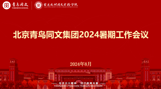 攜手共創(chuàng),再繪華章。為扎實推動集團辦學一體化建設,切實提升教育教學質(zhì)量,明確發(fā)展方向,不斷改進和提升學校的管理水平,8月13日-14日,北京青鳥同文集團隆重召開2024年暑期工作會議。