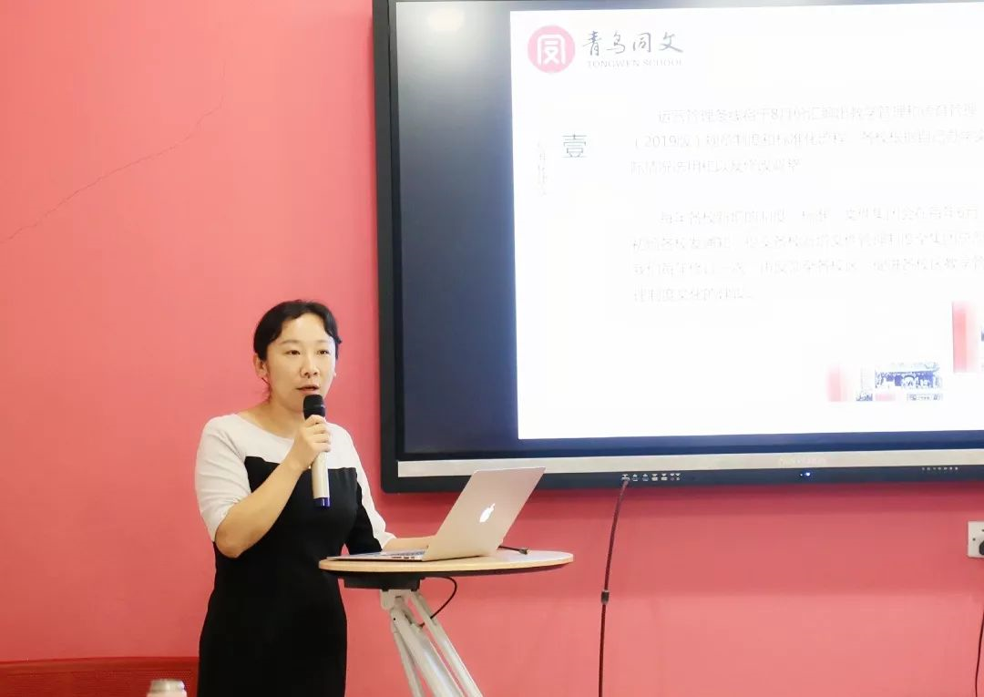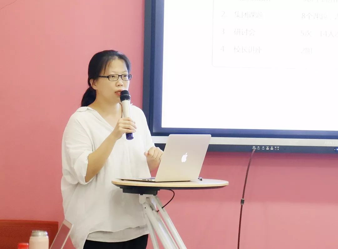 北京青鳥同文教育課程主任莊晶晶匯報(bào)各學(xué)校課程建設(shè)情況,從研學(xué)、研討會、特色課程等各個(gè)方面進(jìn)行總結(jié)。